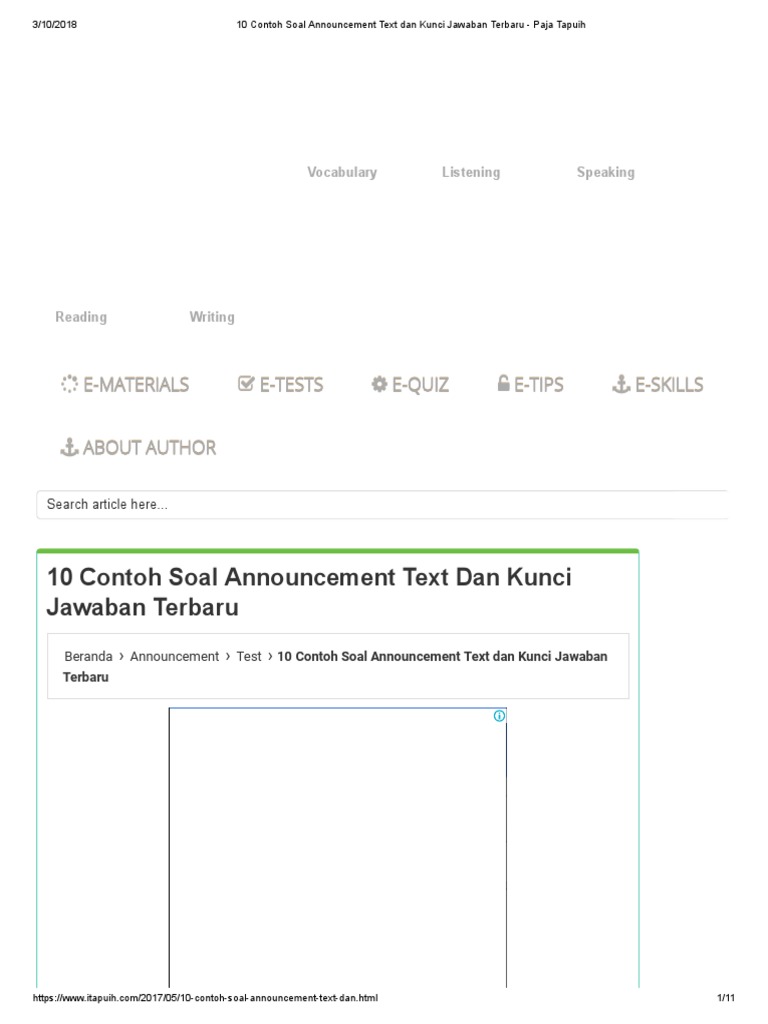 Soal Bahasa Inggris Kelas 10 Tentang Announcement - Rpp Bahasa Inggris Smk Kelas X Kd 3 5 4 5 Materi Announcement - The price for rent c.. Jika di smp kamu menemukan teks yang mudah, soal bahasa inggris kelas 10 menjadi lebih rumit. Contoh soal uts/mid semester ganjil bahasa inggris kelas x sma halo teman semua, bertemu lagi bersama kami disini. To make a reservation, please call santosa hotel at (024) 7607479. 100%(25)100% found this document useful (25 votes). Where do they have the meeting ?